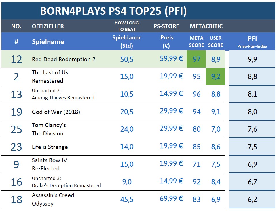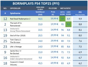 TOP25 PS4 GAMES: Born4plays Preis-Spass-Index