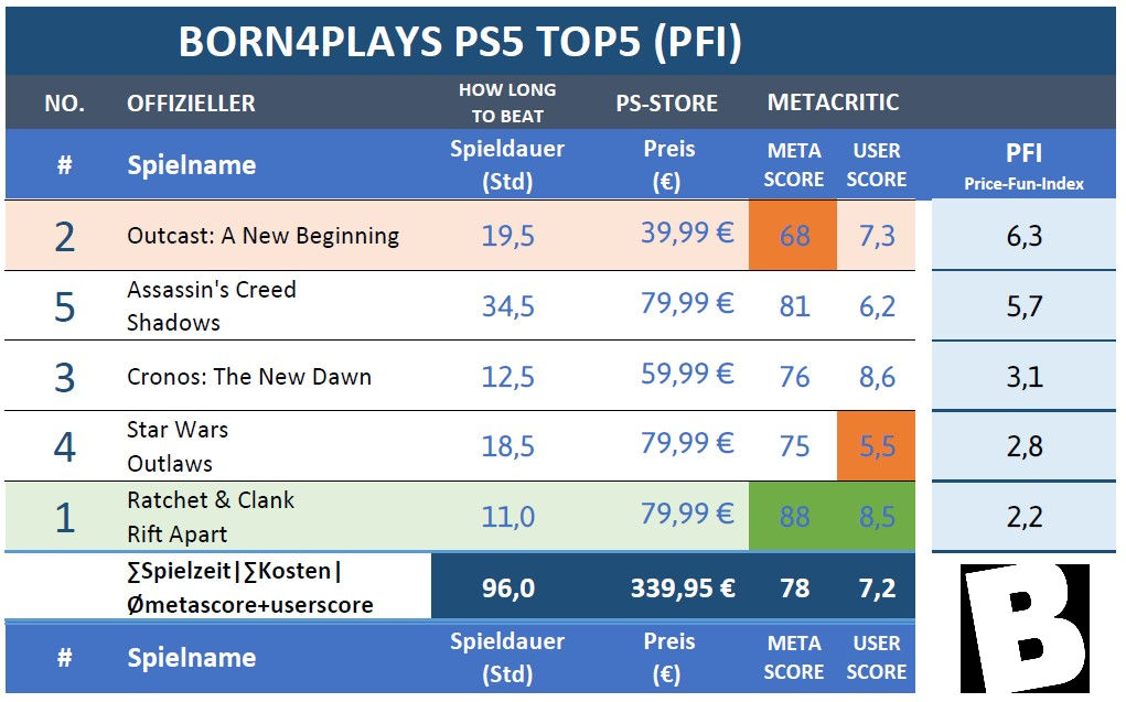 TOP5 PS5 GAMES: Born4plays Preis-Spaß-Index