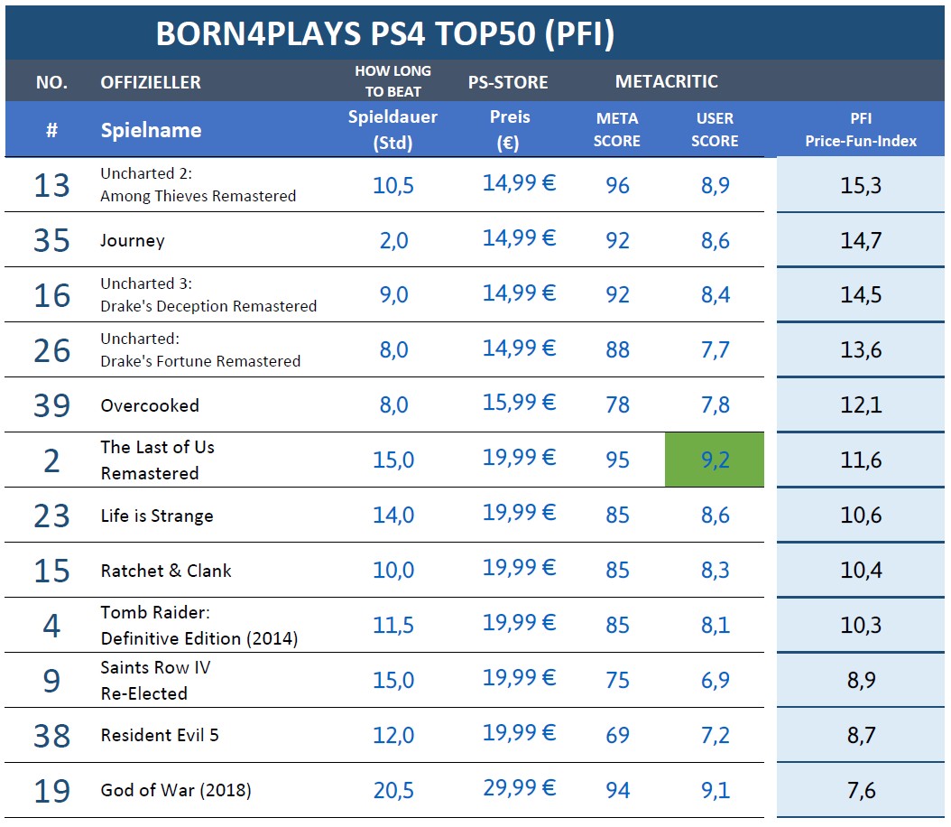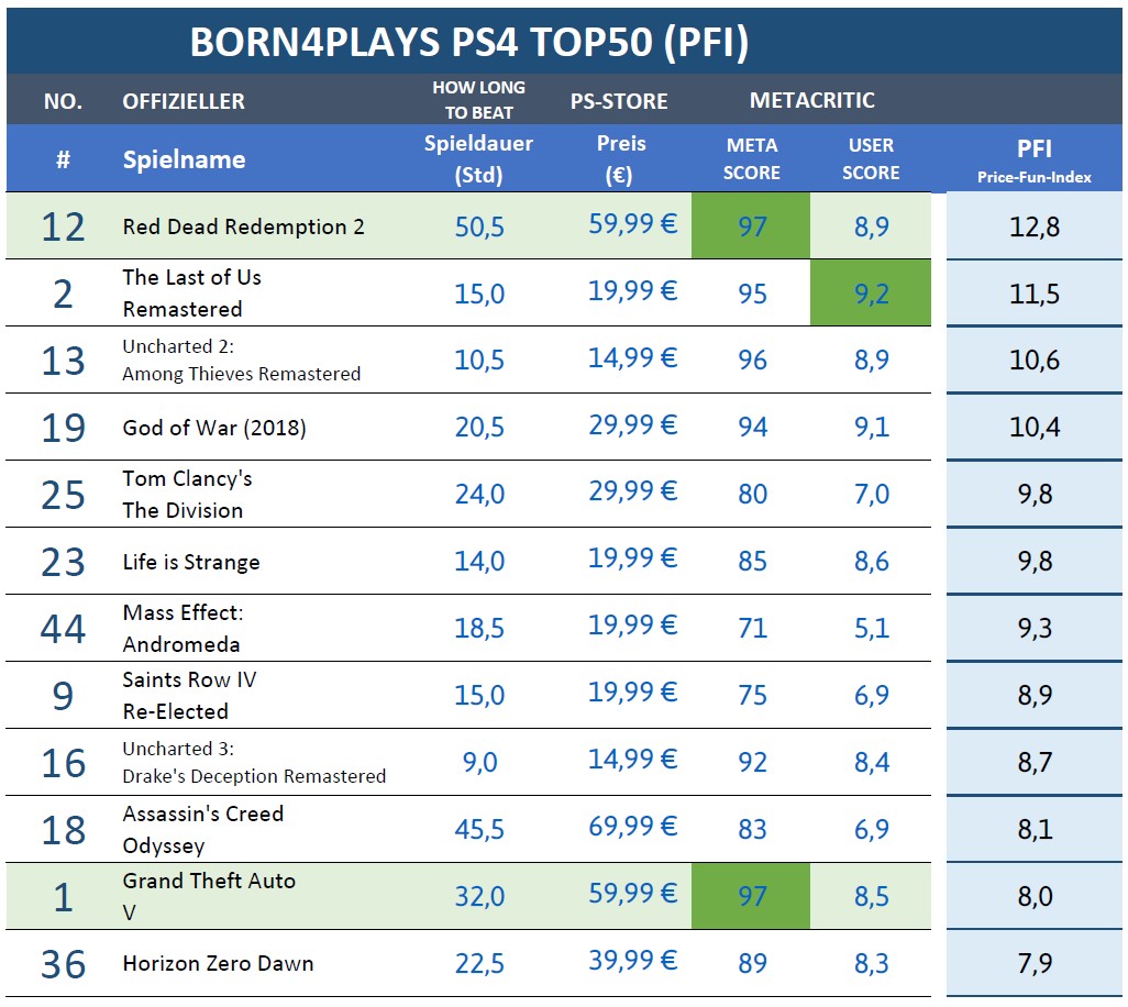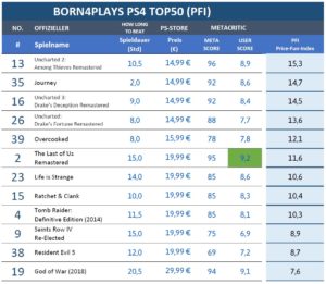 TOP50 PS4 GAMES: Born4plays Preis-Spass-Index